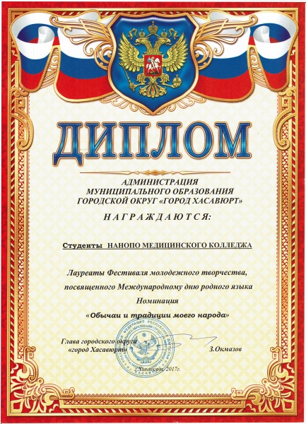 Поздравляем лауреатов Фестиваля молодежного творчества- студентов Медицинского колледжа награжденных Дипломами и ценными призами городского округа город "Хасавюрт".