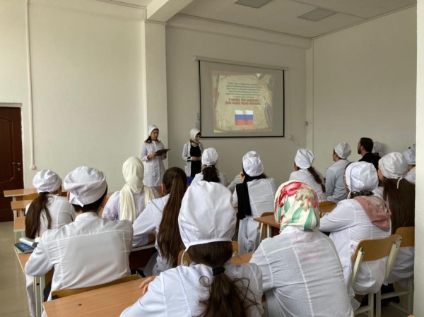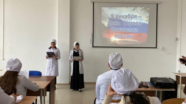 В Медицинском колледже ПОАНО был проведен открытый урок «Чествуем героев сегодня, гордимся ими всегда!». Цель урока: воспитание патриотизма, гражданственности, чувства гордости и уважения к историческому прошлому Родины. Студенты рассказали об истории присвоения государственных наград в России, о подвигах дагестанцев Героев Советского Союза, о славных ратных традициях наших Вооруженных сил.
