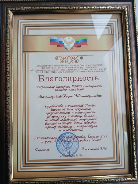 23 декабря активисты и волонтёры ПОАНО "Медицинский колледж "г.Хасавюрт приняли активное участие в мероприятии ,организованном ГБУ РД ТКЦСОН "г.Хасавюрта и Хасавюртовского района .На мероприятие были приглашены жены ,вдовы и дети участников СВО.